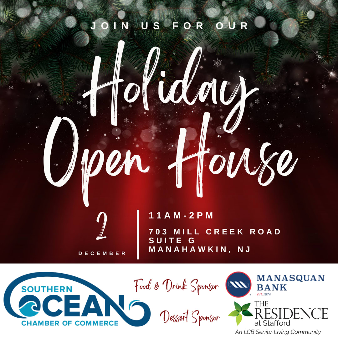 The holiday spirit is in the air, and we’re inviting you to celebrate with us at the Southern Ocean County Chamber’s festive Open House! Join us on Tuesday, December 2nd, anytime between 11:00 AM and 2:00 PM at the Chamber Offices at 703 Mill Creek Road, Suite G Manahawkin.