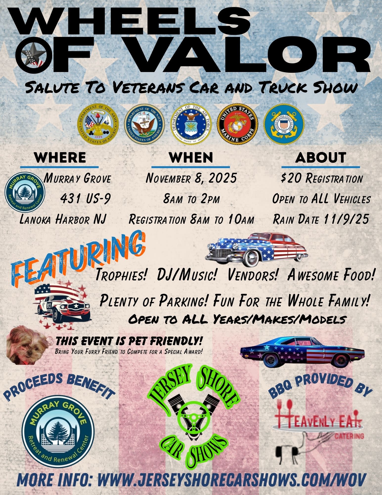 SATURDAY 11/8/25 (Rain Date 11/9/25) REGISTRATION: 8am to 11am SHOW: 10am to 2pm $20 registration Custom Trophies! DJ/Music! Vendors! Awesome Food! Open to ALL Years/Makes/Models MORE INFO: www.JerseyShoreCarShows.comImages