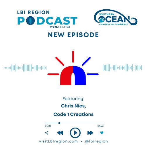 New Podcast Episode! On this episode of the LBI Region Report Podcast, Chris Nies, Code 1 Creations, discusses how the business was started in a garage nearly three years ago with a $25,000 screen printing kit bought on a credit card. After quickly turning a profit, they moved into a former Mister Softee space in Forked River and grew to a team of nine. Fully self-funded, they offer a hands-on, transparent production experience, with most business coming from word of mouth—especially among first responders.