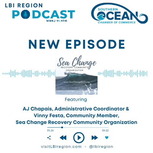 This week’s LBI Region Report spotlights AJ Chapais, Administrative Coordinator & Vinny Festa, Community Member, with Sea Change Recovery Community Organization. Sea Change is a local nonprofit providing free, judgment-free support for individuals and families impacted by addiction. Through peer support, harm reduction, and community programs, they work to save lives and break the stigma around recovery.
